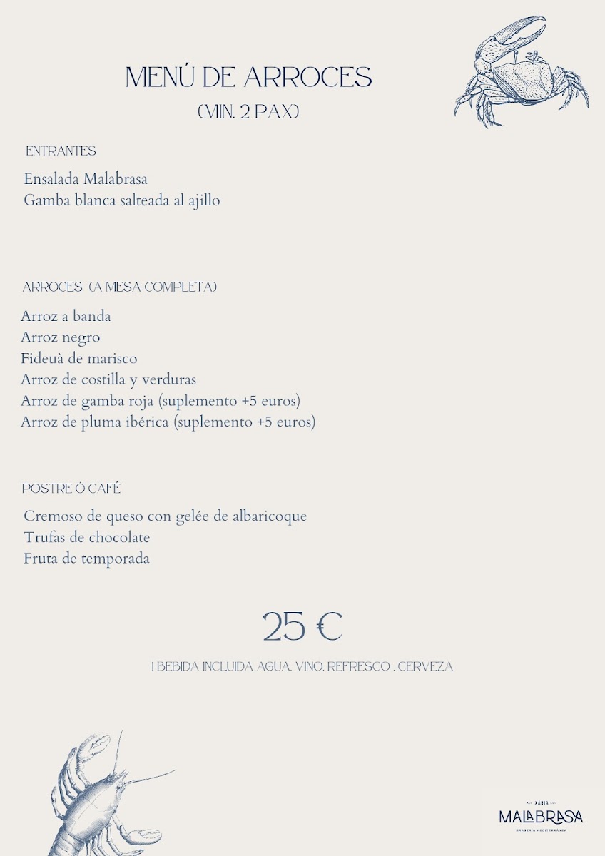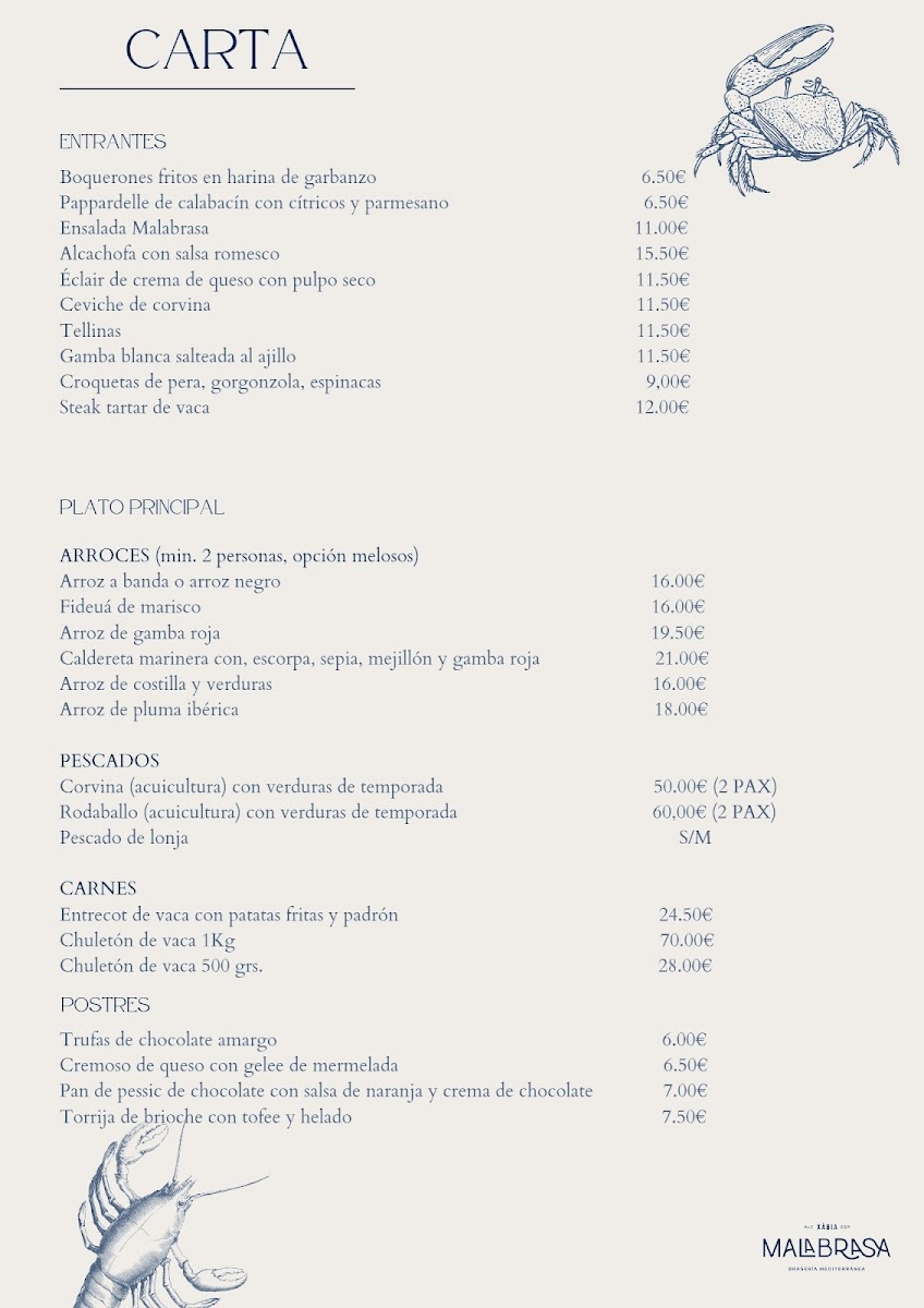 Introducing Restaurante Malabrasa, a culinary gem nestled in the heart of Jávea’s old town. This vibrant restaurant, located at Carrer Sanchis Guarner, 5, showcases a menu brimming with Mediterranean flavors and exceptional dishes. From Tuesday to Friday, indulge in their delectable daily menu for just €16.50. For rice lovers, the special arroces menu available from Tuesday to Sunday is a must-try, priced at €25.00, while meat enthusiasts can savor the parrilla menu, also available on weekends for €35.00.